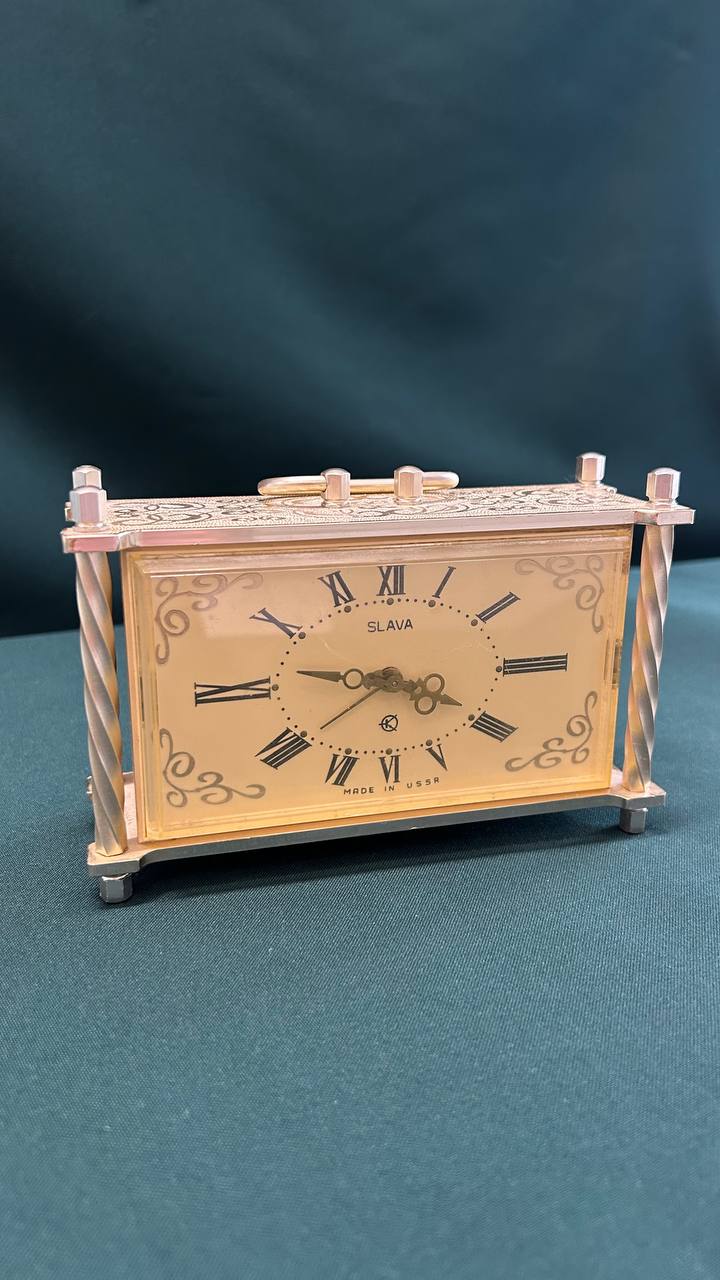 Часы с будильником "Слава", СССР. (9.84) В рабочем состоянии, на батарейке, размер 9,5х15 см.