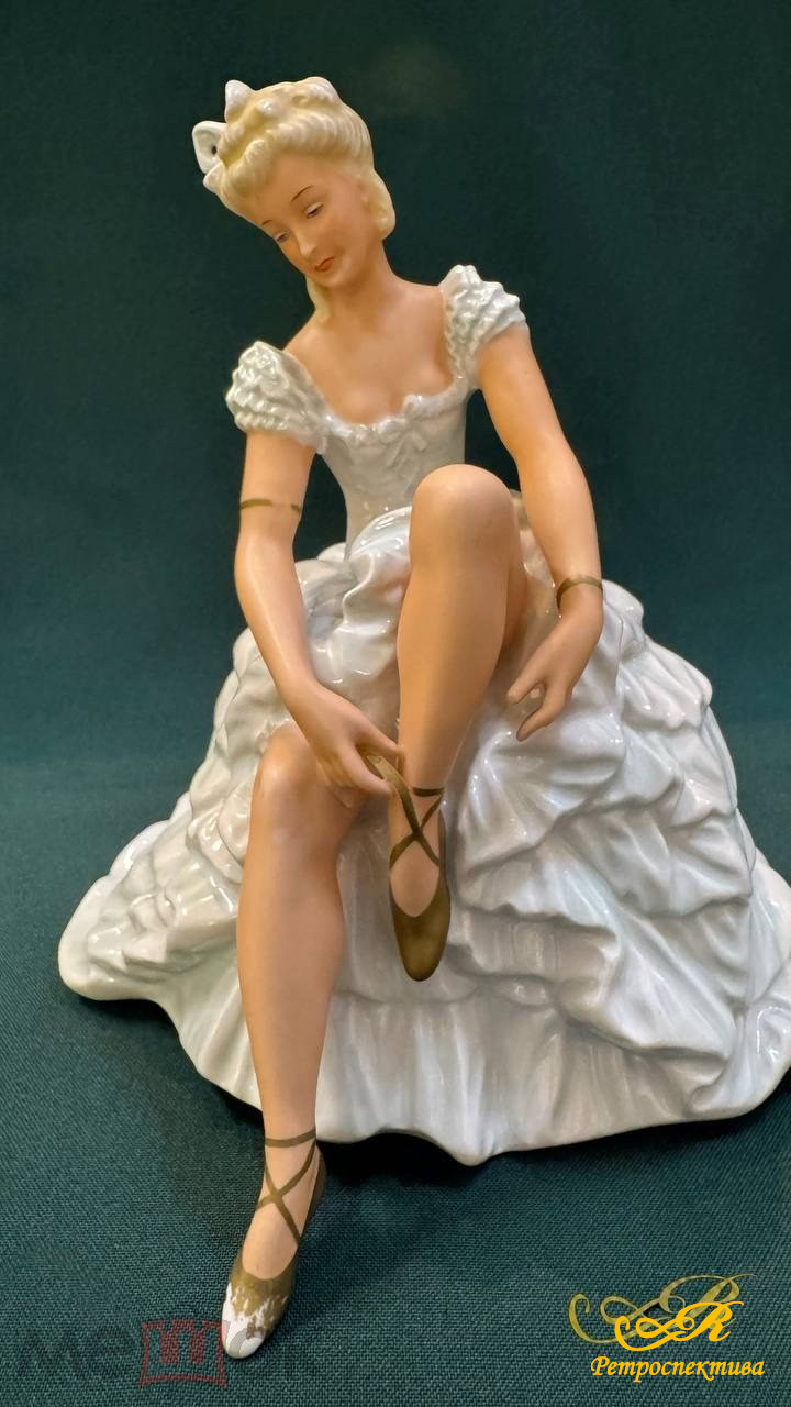 Фарфоровая статуэтка "Балерина поправляет пуанты." Германия. Schaubach Kunst. Шайбах Кунст.