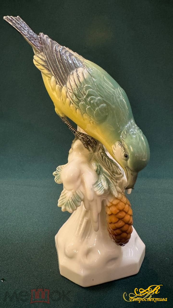 Фарфоровая статуэтка " Клест с шишкой " Германия, клеймо Volkstedter. Высота 19,5 см. Состояние отличное. (2.424)