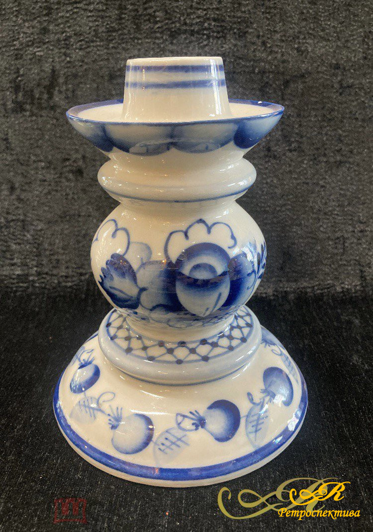 Фарфоровый подсвечник, СССР, сер. ХХ в. фарфор, высота 15 см. Клеймо: Гжель.