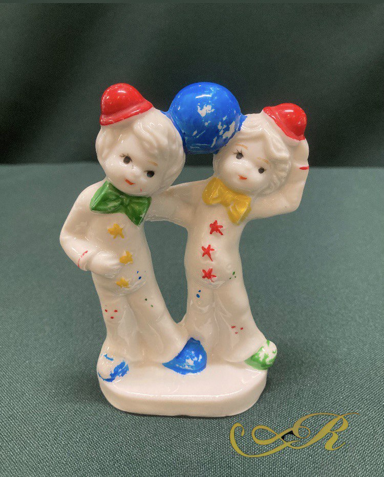 Клоуны с мячиком, фарфор СССР, 1945г, Прогресс, высота 11 см. (2.354)