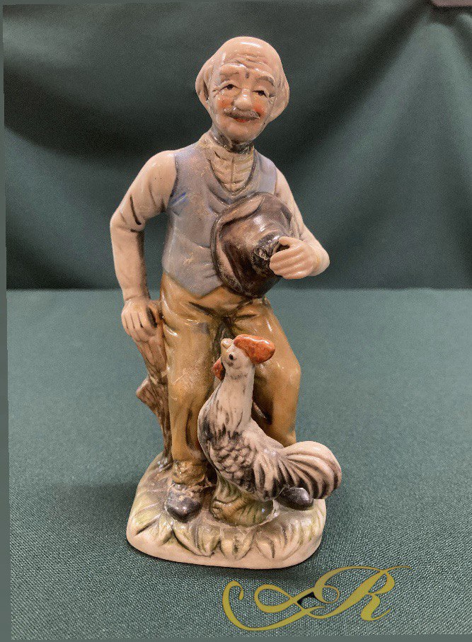 Статуэтка «Старичок с петухом» Новая Зеландия. фарфор, бисквит. высота 16 см. После реставрации. ( 2.249)