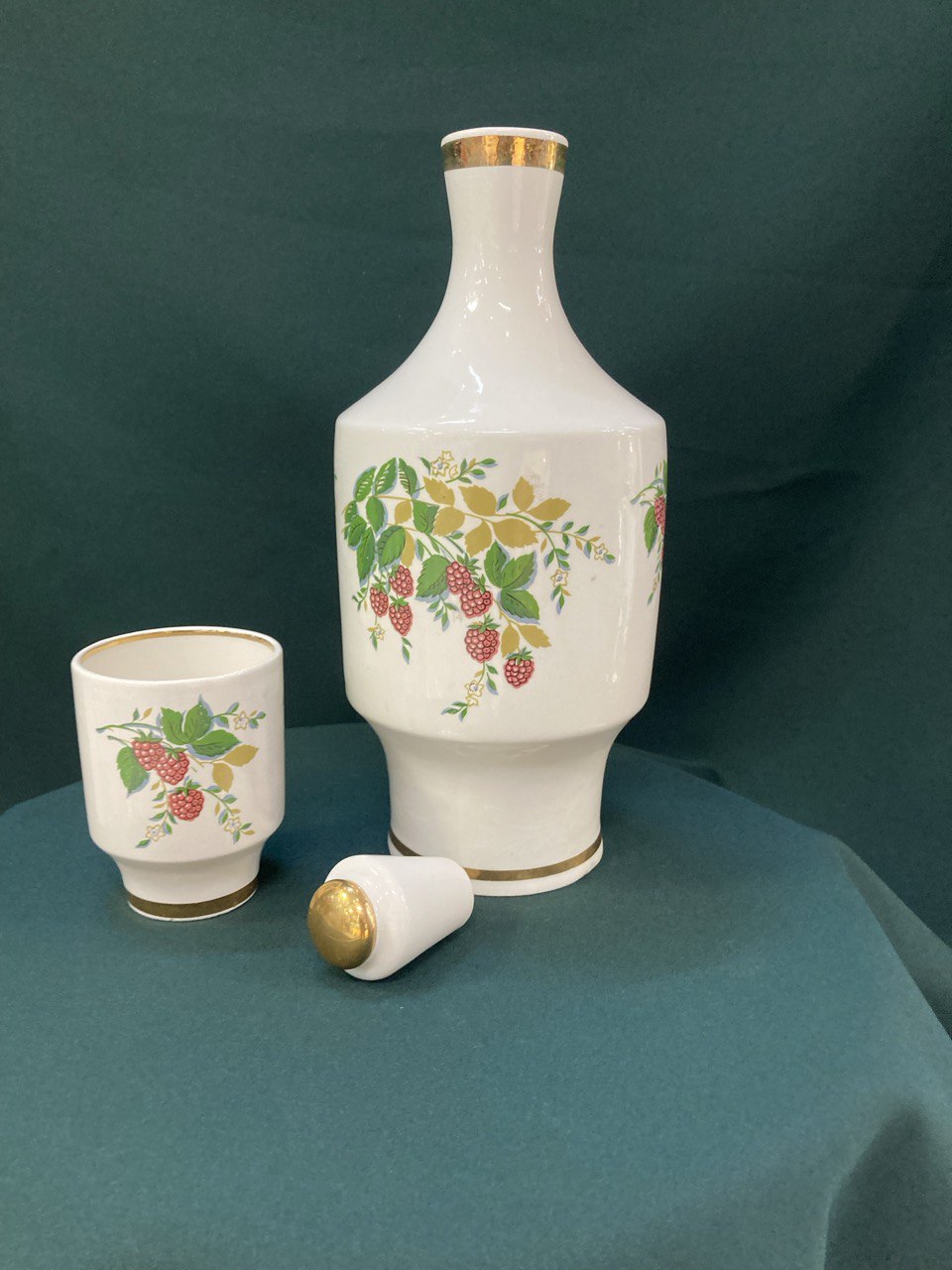 Графин 1 стакан. "Малина" СССР. ЗиК. Фаянс.