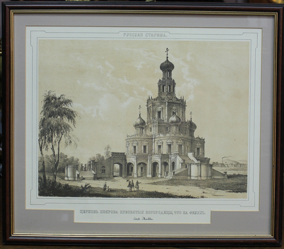 Литография "Церковь Покрова Пресвятой Богородицы, что на Филях" Материал: бумага, печать, размер 34х41 см.