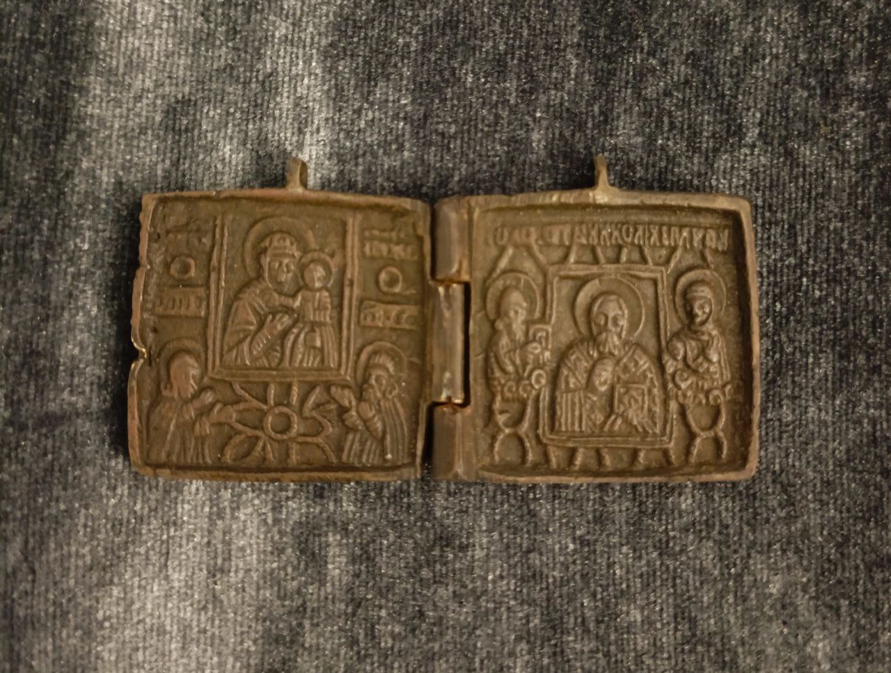Солдатский складень. Медь. XIX век.Размер 3х3см