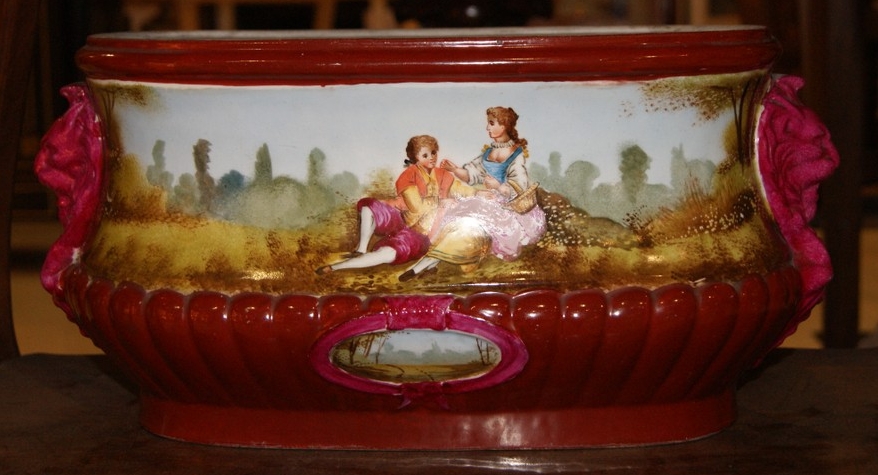 Кашпо для цветов, Европа, XIX-нач. ХХ в. Материал: фарфор, живопись, размер 19х37 см.