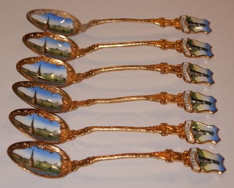 Ложки чайные «Москва», СССР, сер. XX в. Материал: латунь, золочение, эмаль.