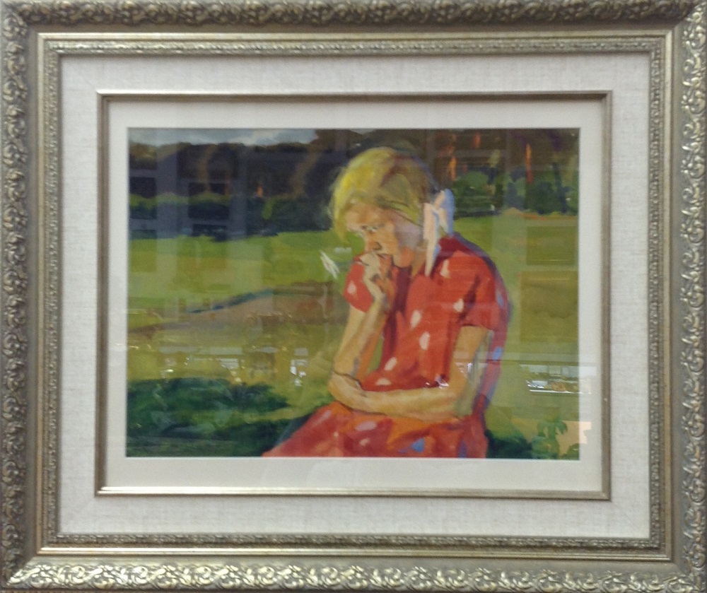 Картина "Девочка в красном платье", Художник Туманов А.Р., материалы бумага, акварель, размеры: 34х45 см.