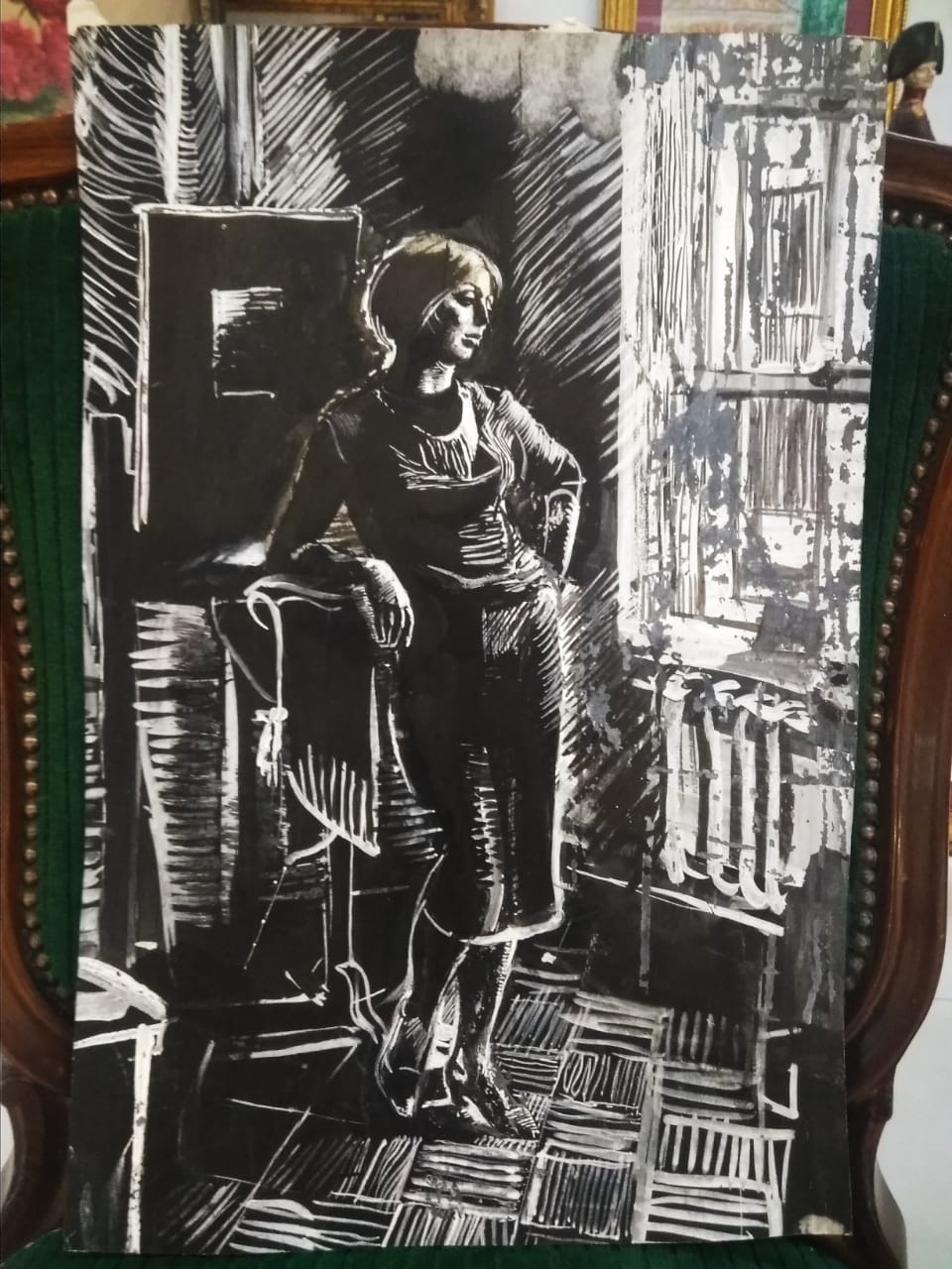 Картина "Девушка" Автор: Туманов А.Р. Материалы: бумага, гуашь Размеры: 45х29,5 см. Состояние на фото