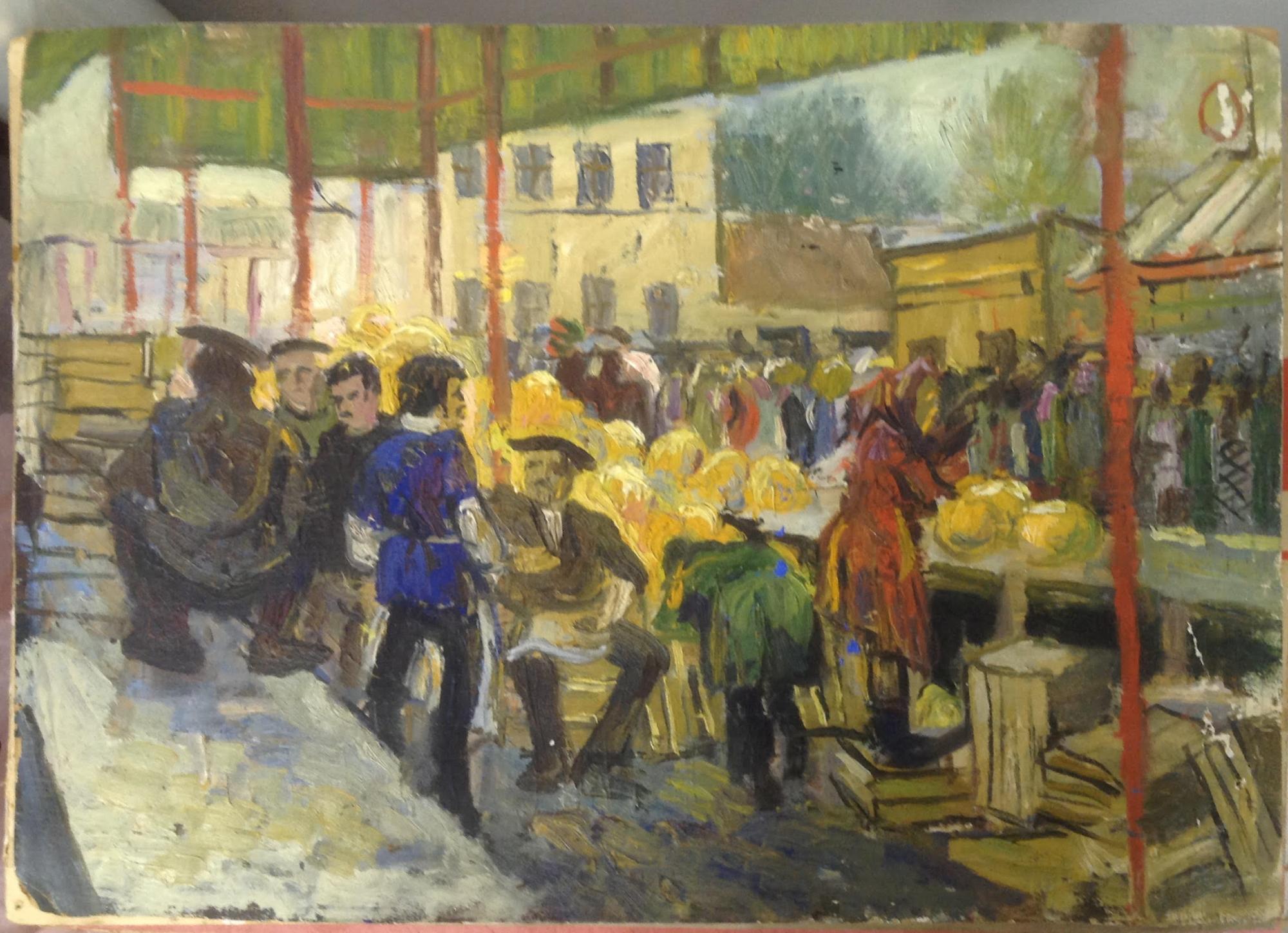 Картина "Дыни поспели", материал: картон, масло, 1984 год, Художник Закиров А.М., размеры: 49х34 см.
