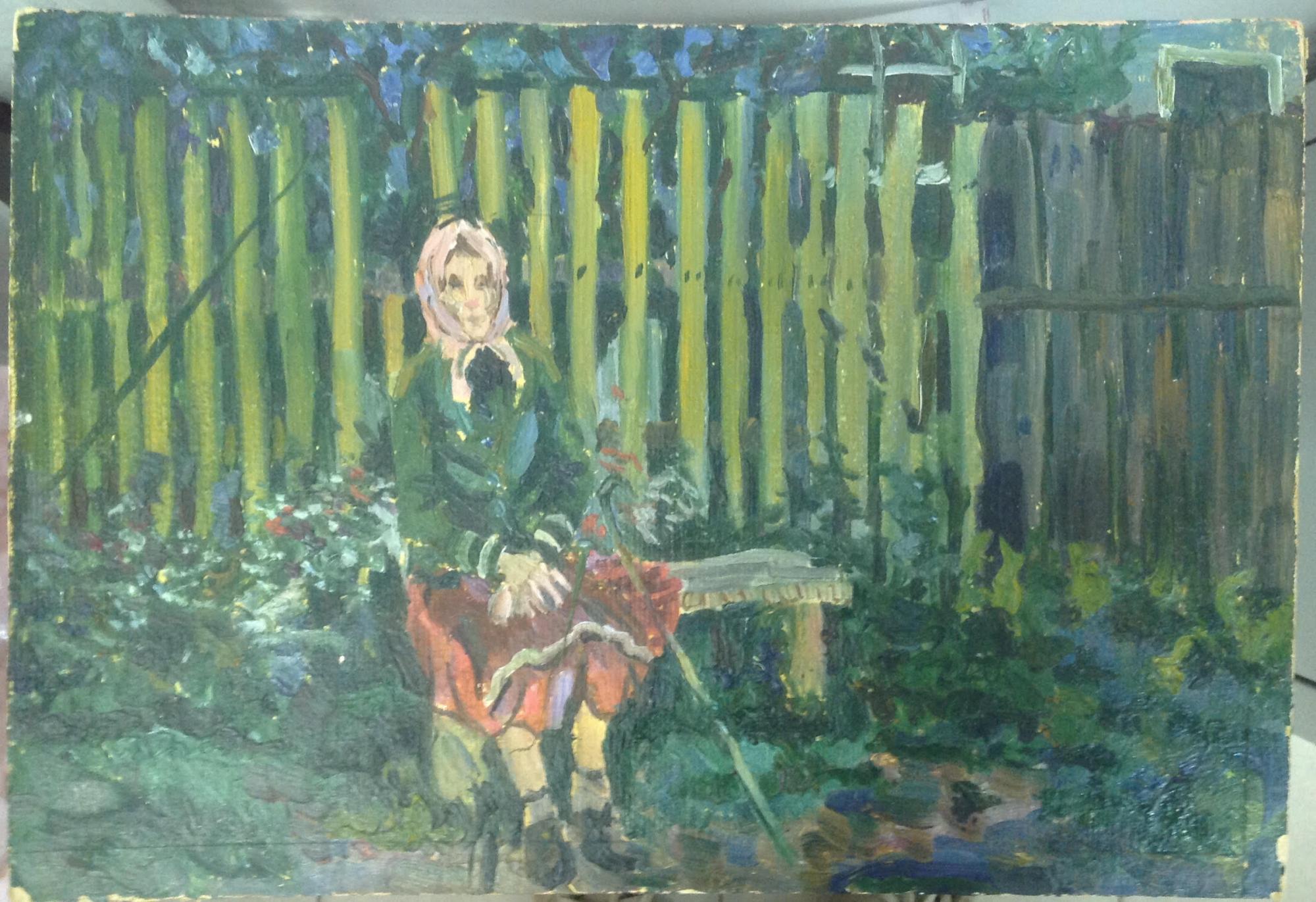 Картина "Елабужская бабуля", материал: картон, масло, Художник Закиров А.М. , 1985 год.