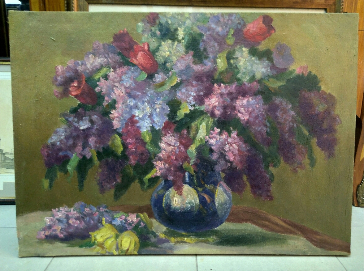Картина "Натюрморт с сиренью" художник Супонин П.М. материал: холст, масло, размер 50х69,5 см.