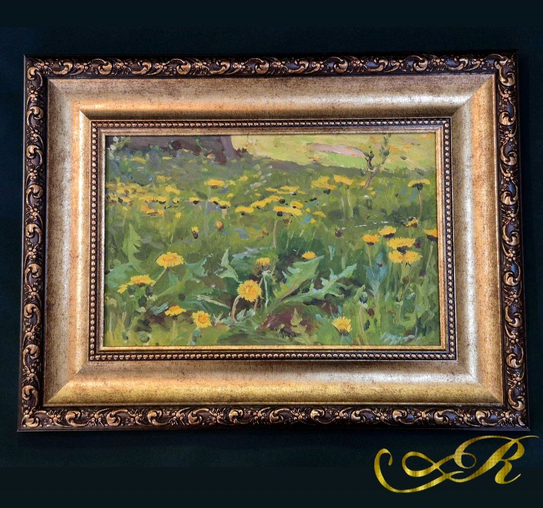 Картина «Одуванчики» худ. Родионов А.М. 1976 г, картон масло, 22х34 см