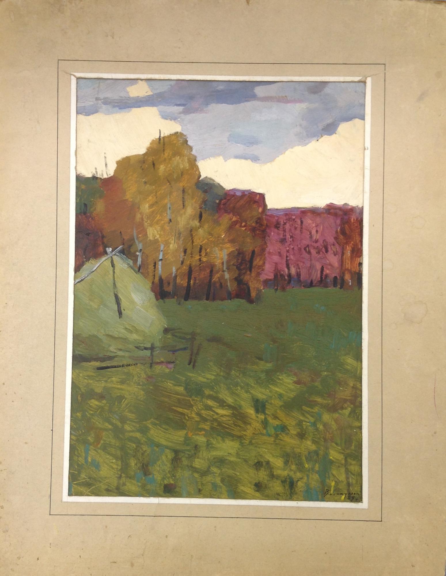 Картина "Осень", автор: Хибатуллин Рефад Ренадович, материалы: картон, масло, размеры 40х28 см, 1938 год, Казань ТаССР.