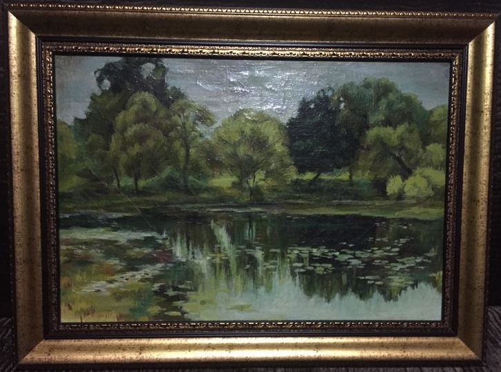Картина "Пейзаж с озером", 1 пол. XX в. Материал: холст, масло, размер без багета 34х42 см.