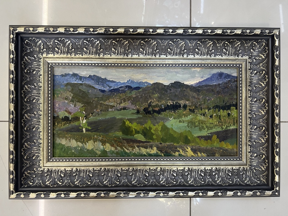 Картина Урманче Б.И " Пейзаж ", бумага на ДВП, масло 23,5х47,5см