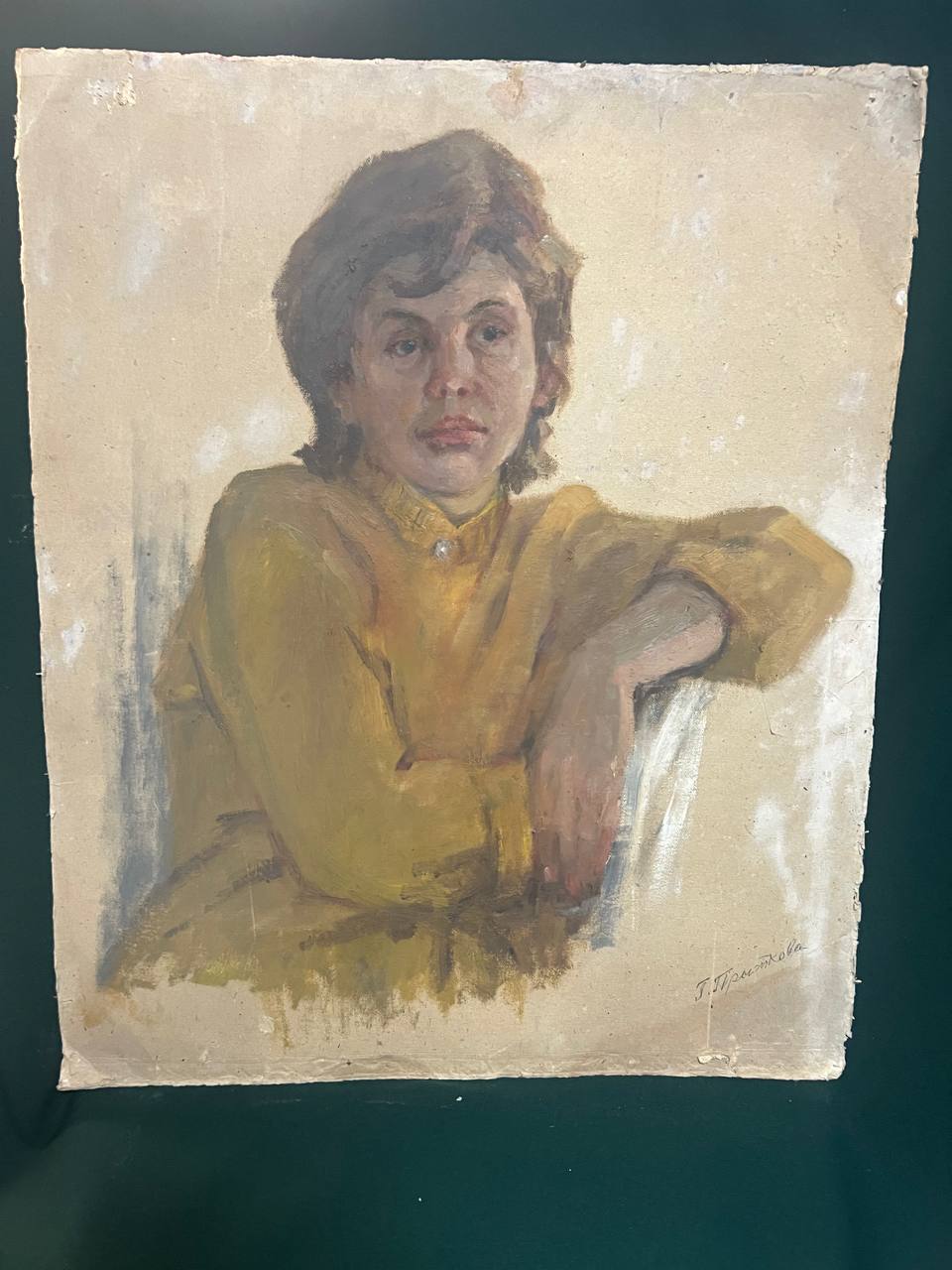 Женский портрет, СССР, художник Прыткова Г. картон, масло, размер 60х50 см.