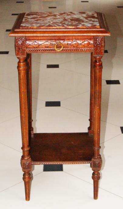 Консоль с выдвижным ящиком, нач. ХХ в. Материал: мрамор, орех, высота 74 см.