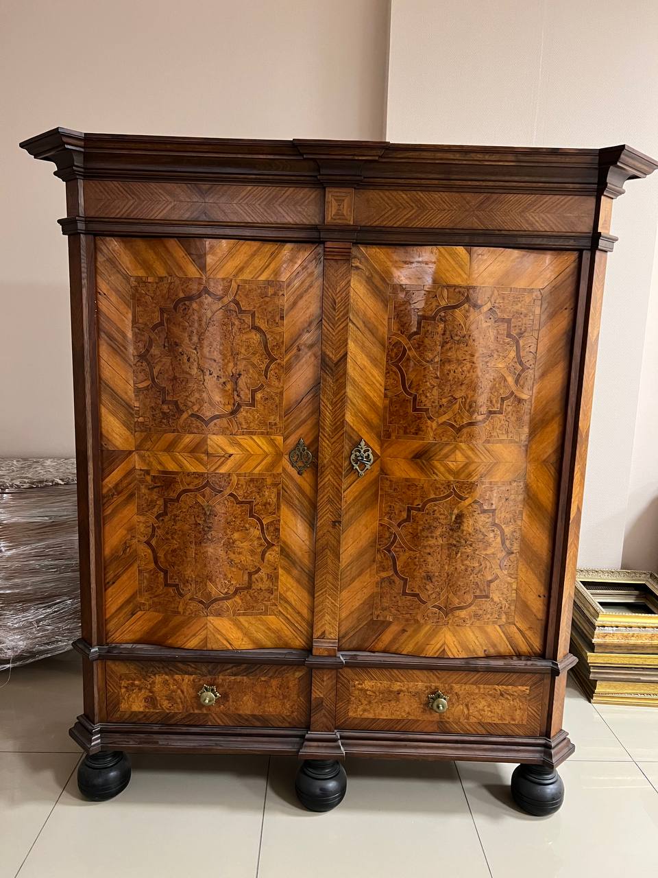 Шкаф платяной. Материал: массив дерева, корневой шпон, Российская Империя, кон. ХVIII века. Размеры: 182Х165х63 см