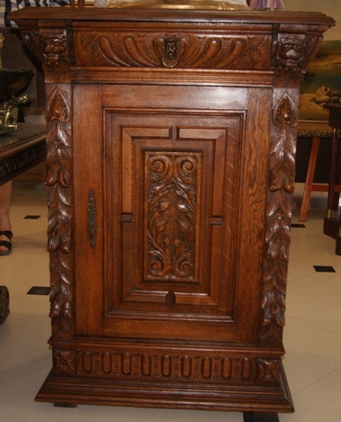 Тумба, Европа, XIX в. Материал: дерево дуб, резьба, бронза, размер 102х72х49 см.