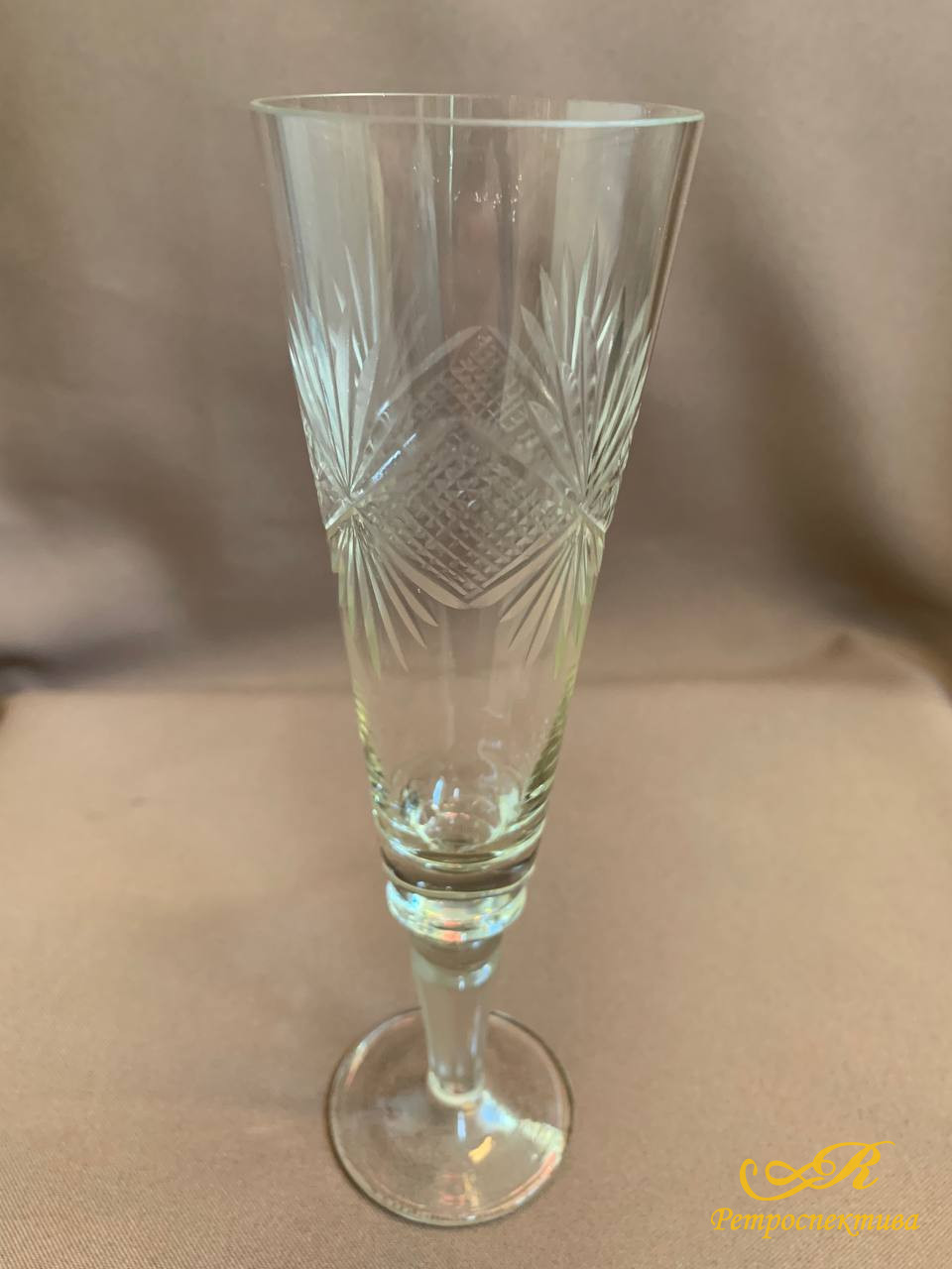 102. Пять Шампанок, СССР , пер. пол. ХХ века, хрусталь, выдувание,гравировка, огранка, высота 180 мм. Объем 100 мл.
