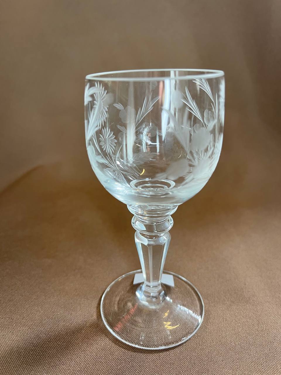 119. Рюмка СССР, до 1940 г. Резьба,гладкое стекло, цветы. Высота 110 мм, объем 60 мл.