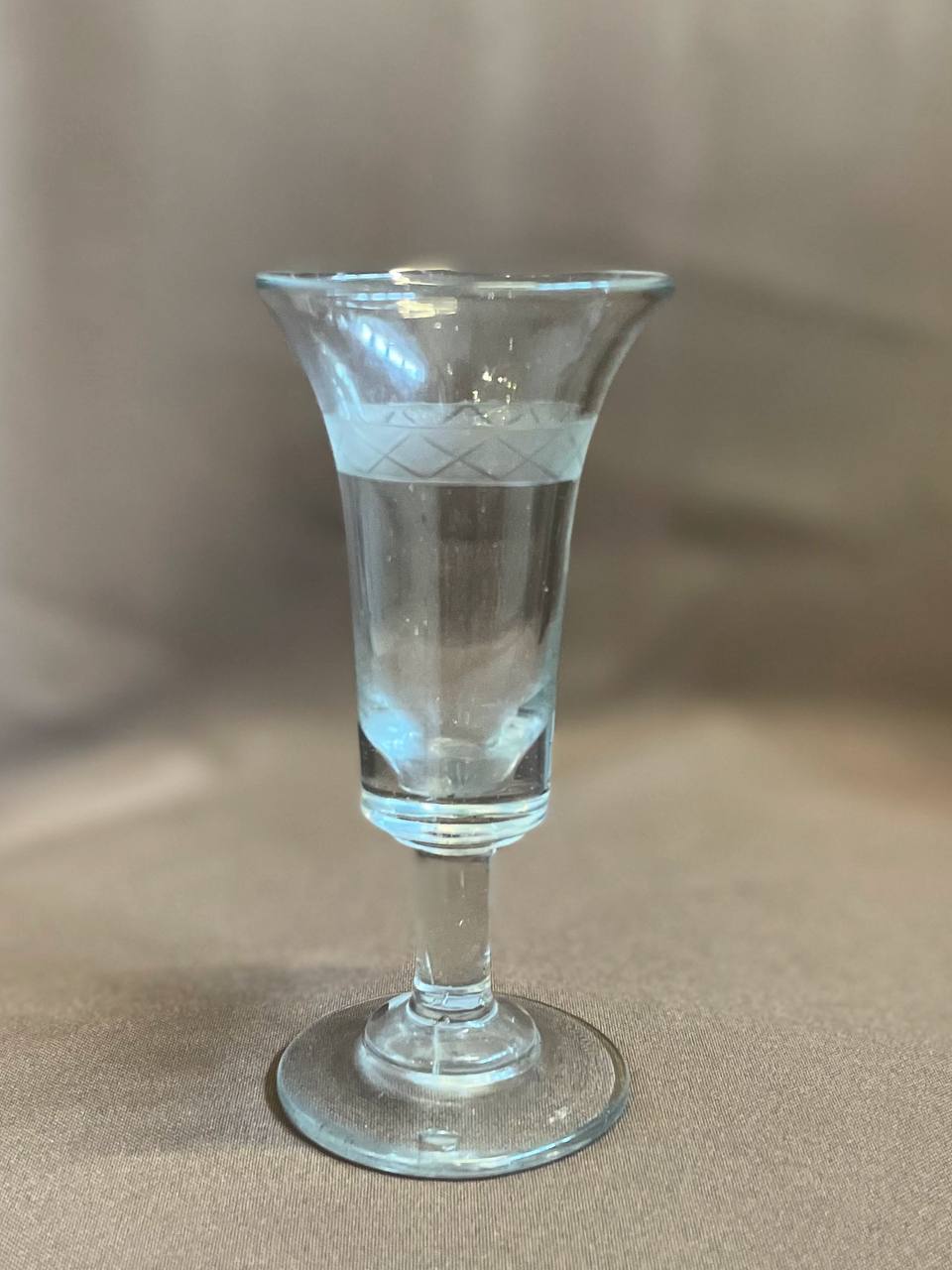 Рюмка (h - 131 мм, v - 60 мл). Произведена на Императорском стеклянном заводе (основан в 1777 г. Екатериной Великой) до 1917 года из стекла с применением гранения и шлифовки.