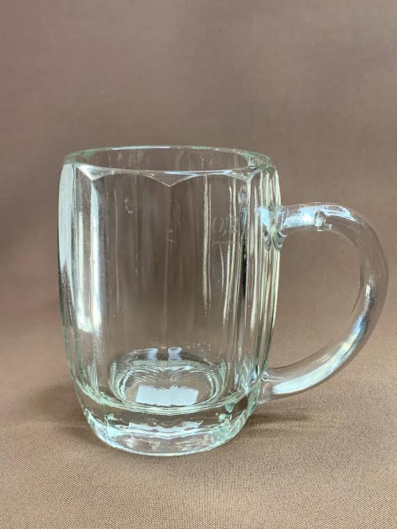 Кружка пивная, Германия, до 1930 г. Высота — 102 мм, объем до края — 250 мл, на дне клеймо «корона» и буквы SG.