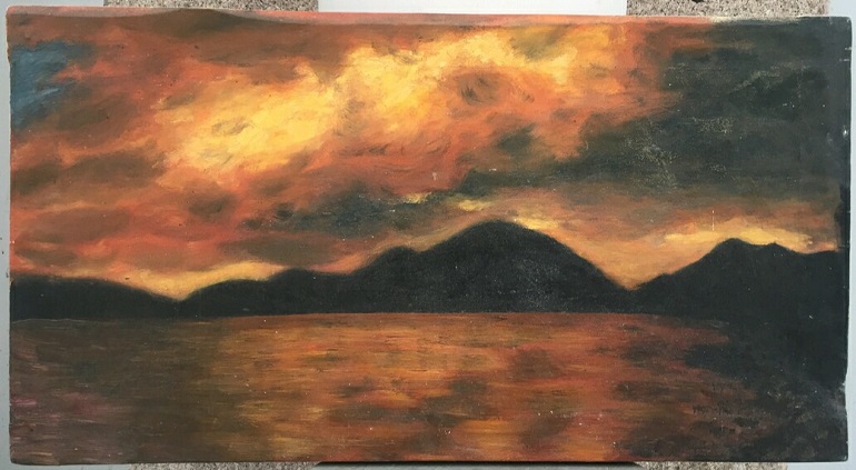 Картина "Пейзаж", художник К.Васильев Экспертиза ИЗО музея РТ Материал: холст, масло, размер 39х72 см. Васи́льев Константи́н Алексе́евич (1942-1976 г) — советский художник, широко известный своими работами на былинно-мифологические темы.Творческое наследие Васильева многопланово и разнообразно и насчитывает более 400 произведений живописи и графики: портреты, пейзажи, сюрреалистические композиции, картины на сказочные сюжеты, на темы древней и современной русской истории. Глубокий символизм живописи в сочетании с оригинальным цветовым решением полотен — широким использованием серебристо-серого и красного цвета и их оттенков — делают картины Васильева узнаваемыми и самобытными. Настоящая большая слава пришла к художнику через десятилетия после его безвременной смерти.