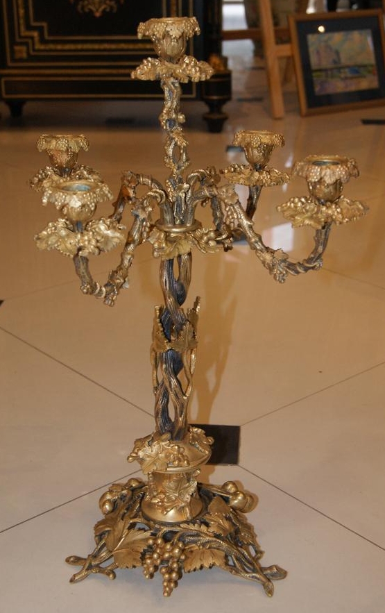Подсвечник, Российская Империя, кон. XIX - нач. ХХ в. Материал: бронза, золочение, высота 53 см. Клеймо: 243 - лимитированная серия