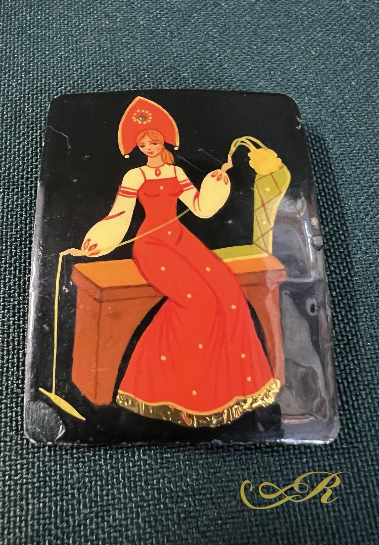 Брошь живопись на металле, сусальное золото. СССР.