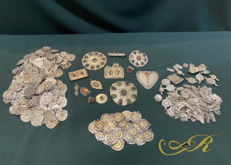 Фрагменты серебряных украшений с подвесами из старинных монисто, чулпы. ХIХ -ХХ в.