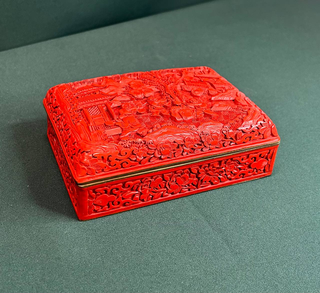 Шкатулка, Китай сер. ХХ в. латунь, эмаль, пекинский резной лак. Размер 5х11х16 см. (5.58)