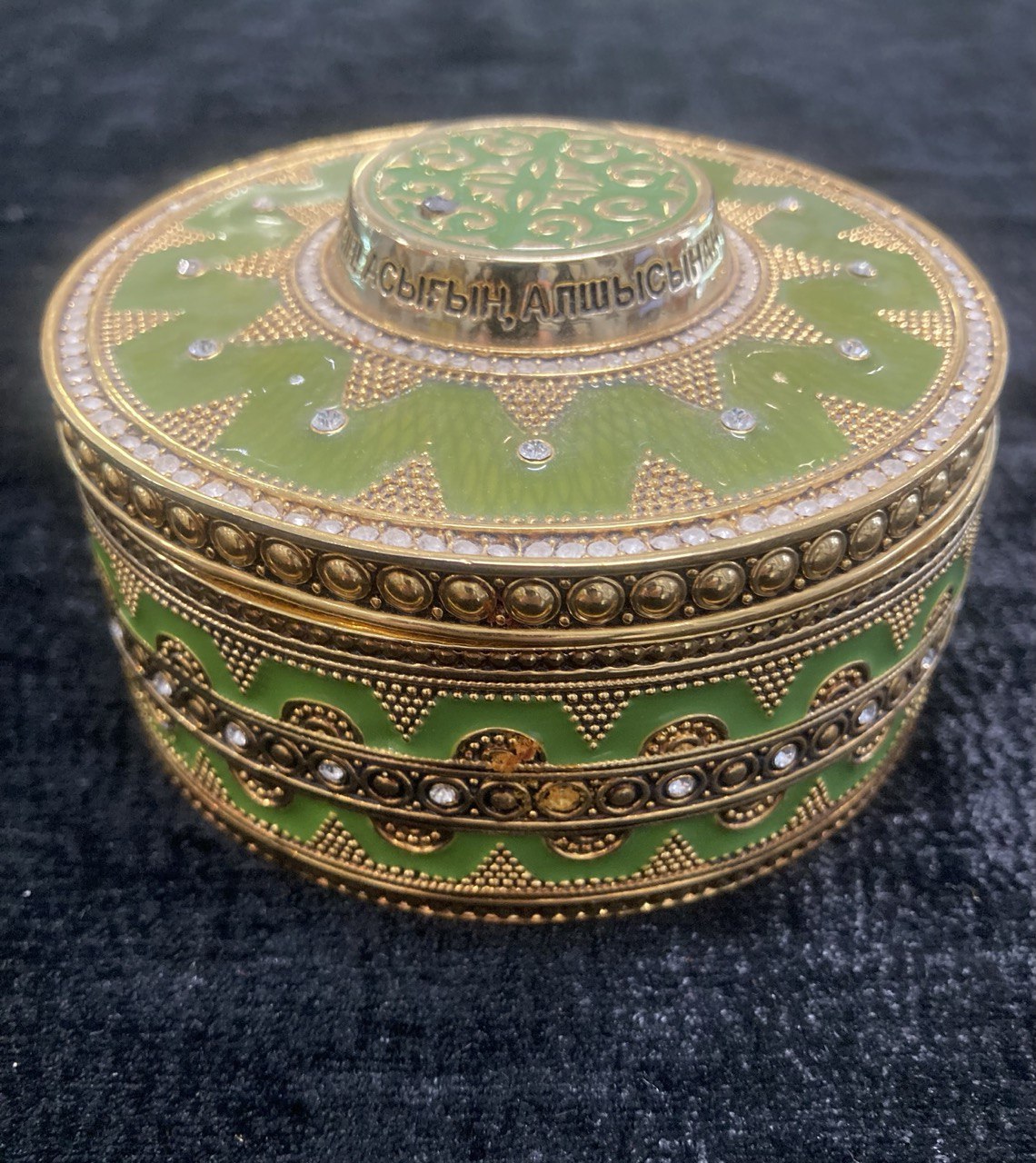 Шкатулка круглая, эмаль, стразы. d 10 см. (5.55)