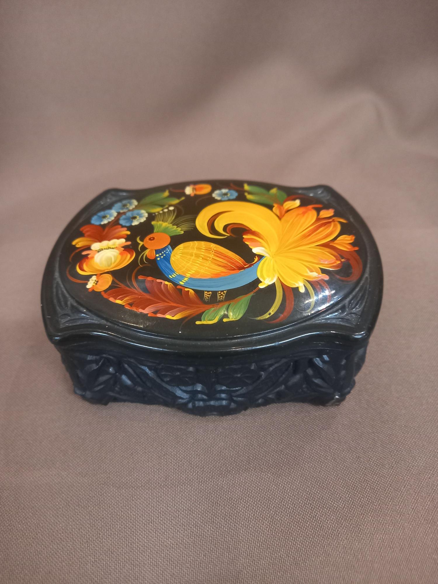 Шкатулка, пластик, живопись, размер 8х10см, высота 4 см. (5.22)
