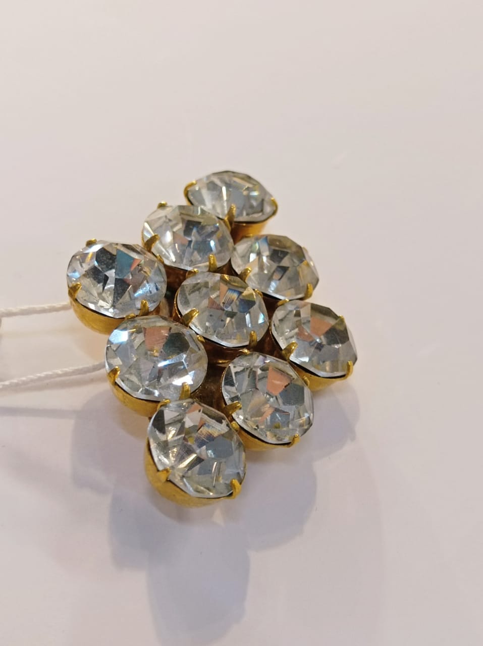 Брошь чешская с белыми камнями, латунь, XX век