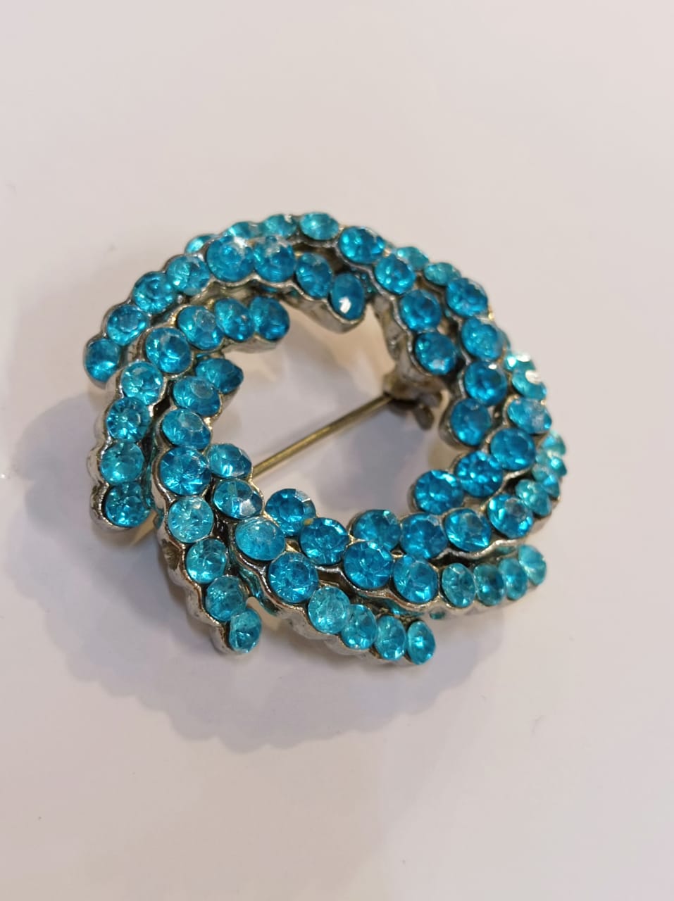 Брошь медная, сплав, голубое ювелирное стекло Состояние на фото